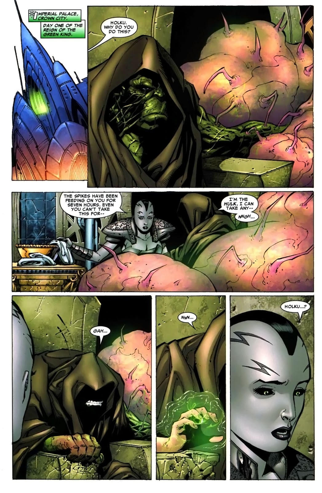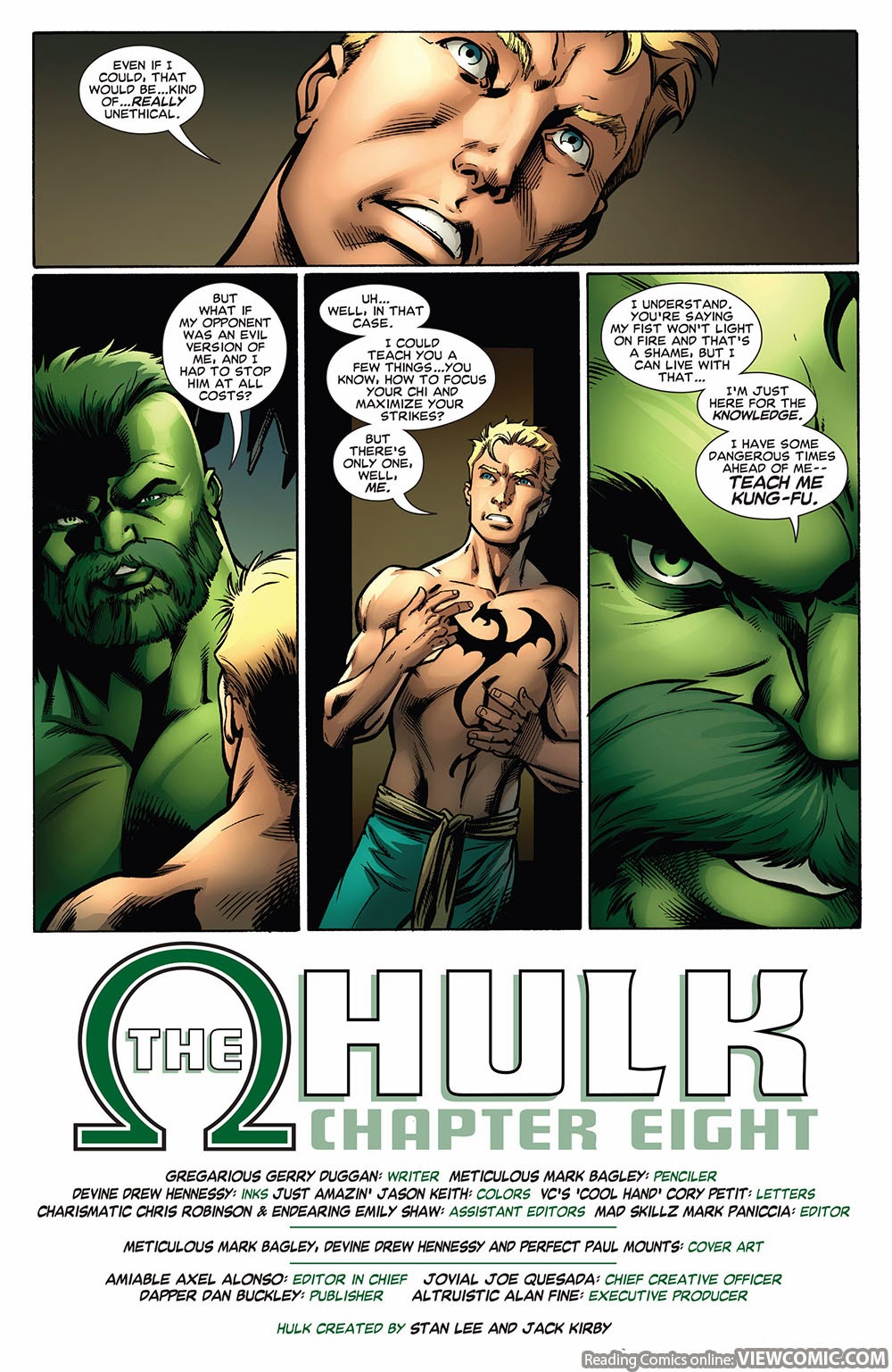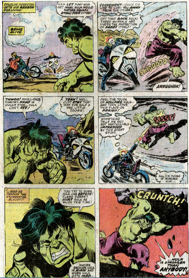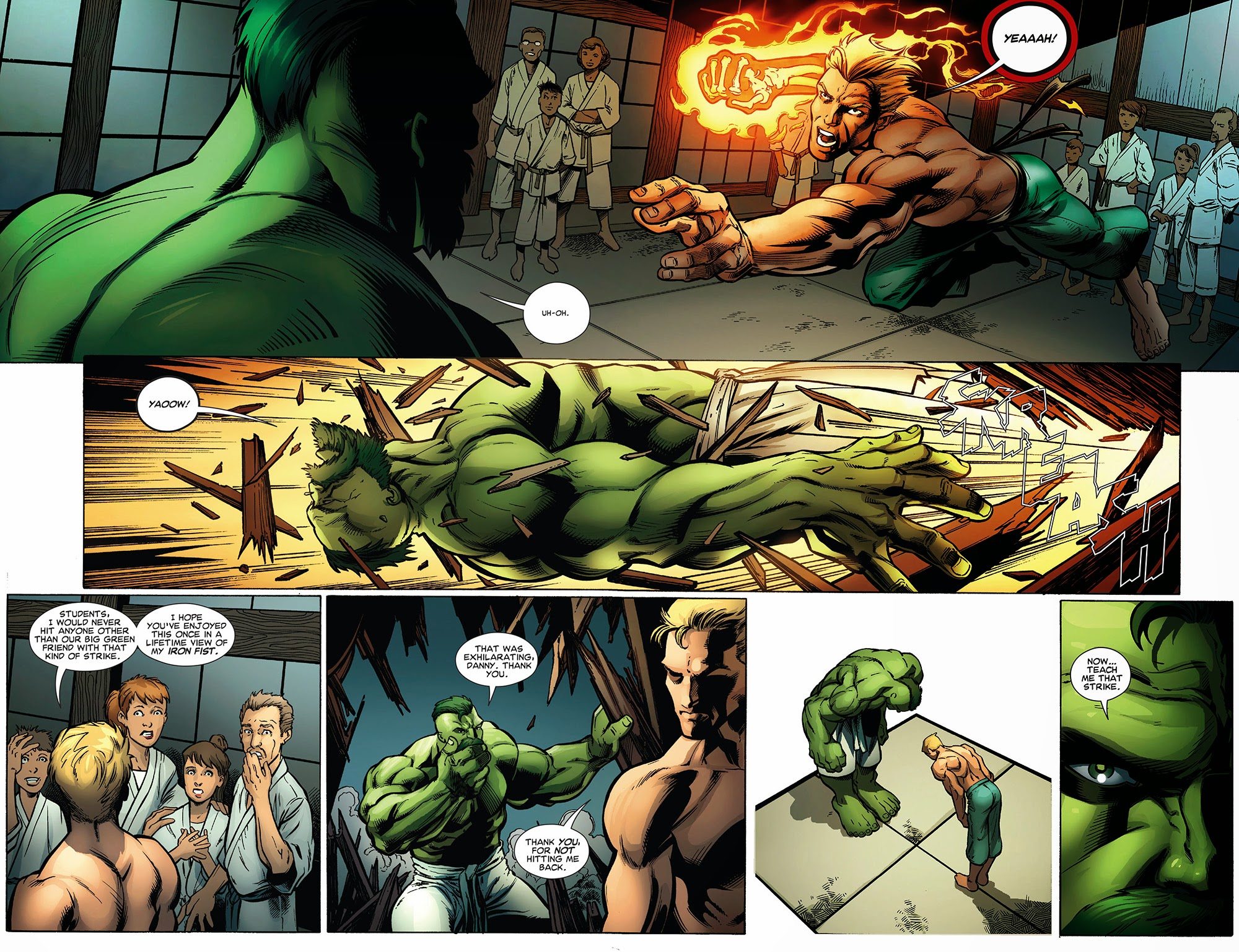 - Master Combatant: The Hulk is a skillful and capable warrior, demonstrating vast versatility and intuition in the battle, like anticipating and exploiting the weakness of Hyperion. The Hulk has consistently faced warriors with experience in combat, such as Thor, the Executioner, and Hercules. As the Green Scar, he has had training in multiple combat arms, including broadswords, spears, and battle shields. As Doc Green, he received martial arts training from the expert martial artist Daniel Rand.