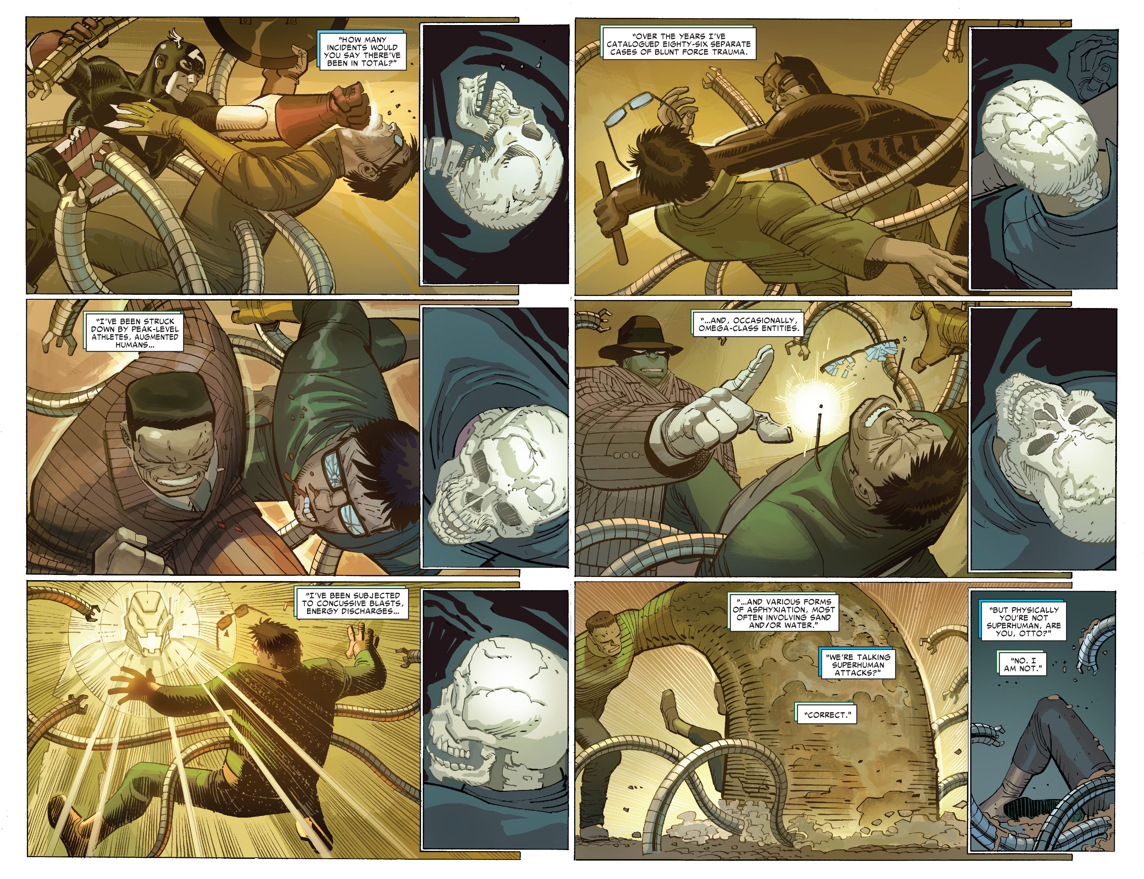 - Has fought off pretty much all of the Avengers at one point or another, sometimes as a team.