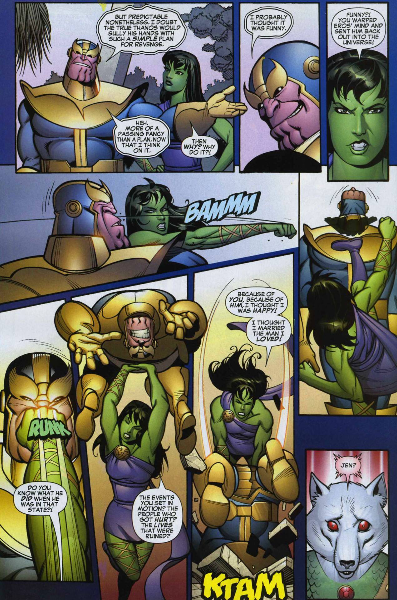 - The mad titan Thanos compared the Hulk's ever increasing strength to that of the former Champion of the Universe, Tryco Slatterus, when Tryco was wielding the Power Gem, and said that he had avoided a confrontation with the Hulk in the past because of this.