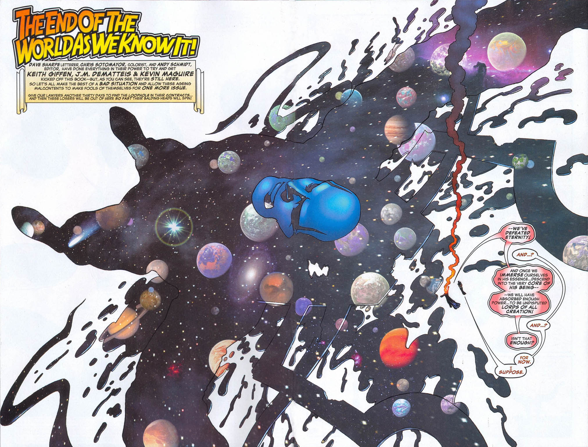 - States he can lift Solar System and can defeat Avengers and Fantastic Four effortless.