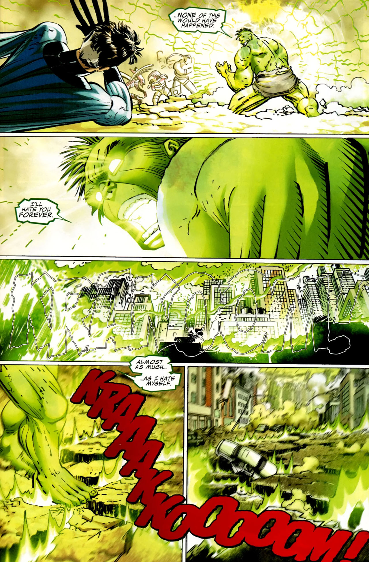 - Wolverine explains that Hulk is basically a walking earthquake.
